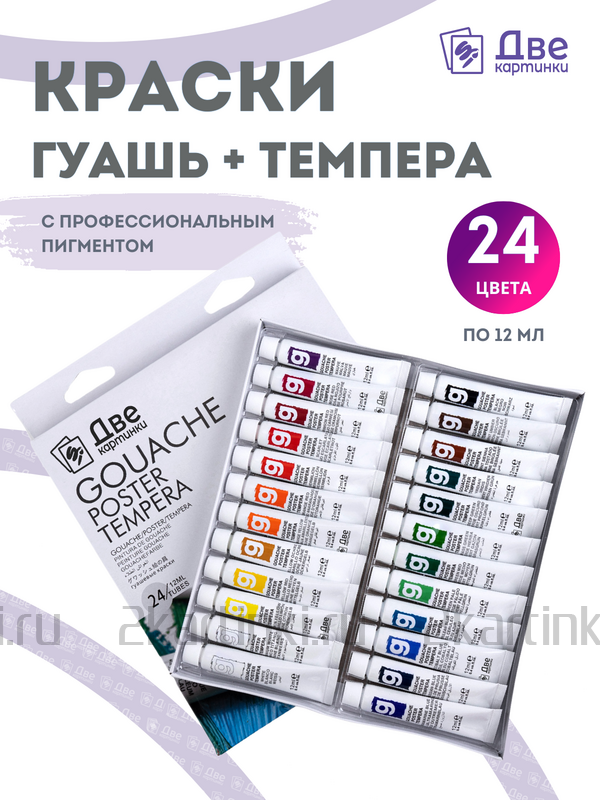 Художественный материал «Краски гуашь «Две картинки» в тюбиках 24 шт. по 12 мл» размером см. купить по выгодной цене 1 079 ₽ с доставкой по Москве и всей России.